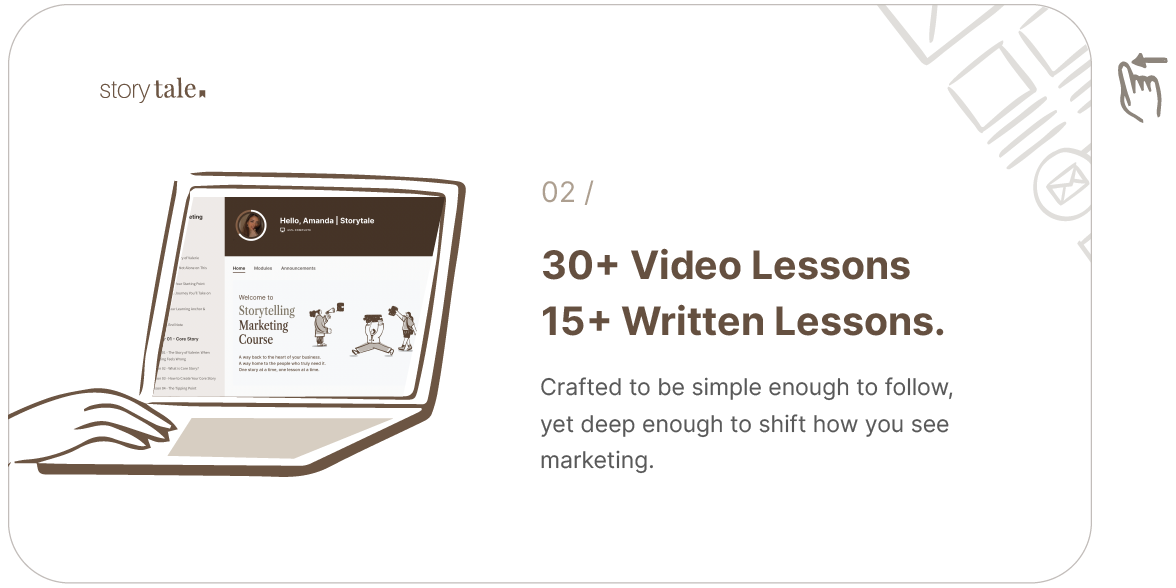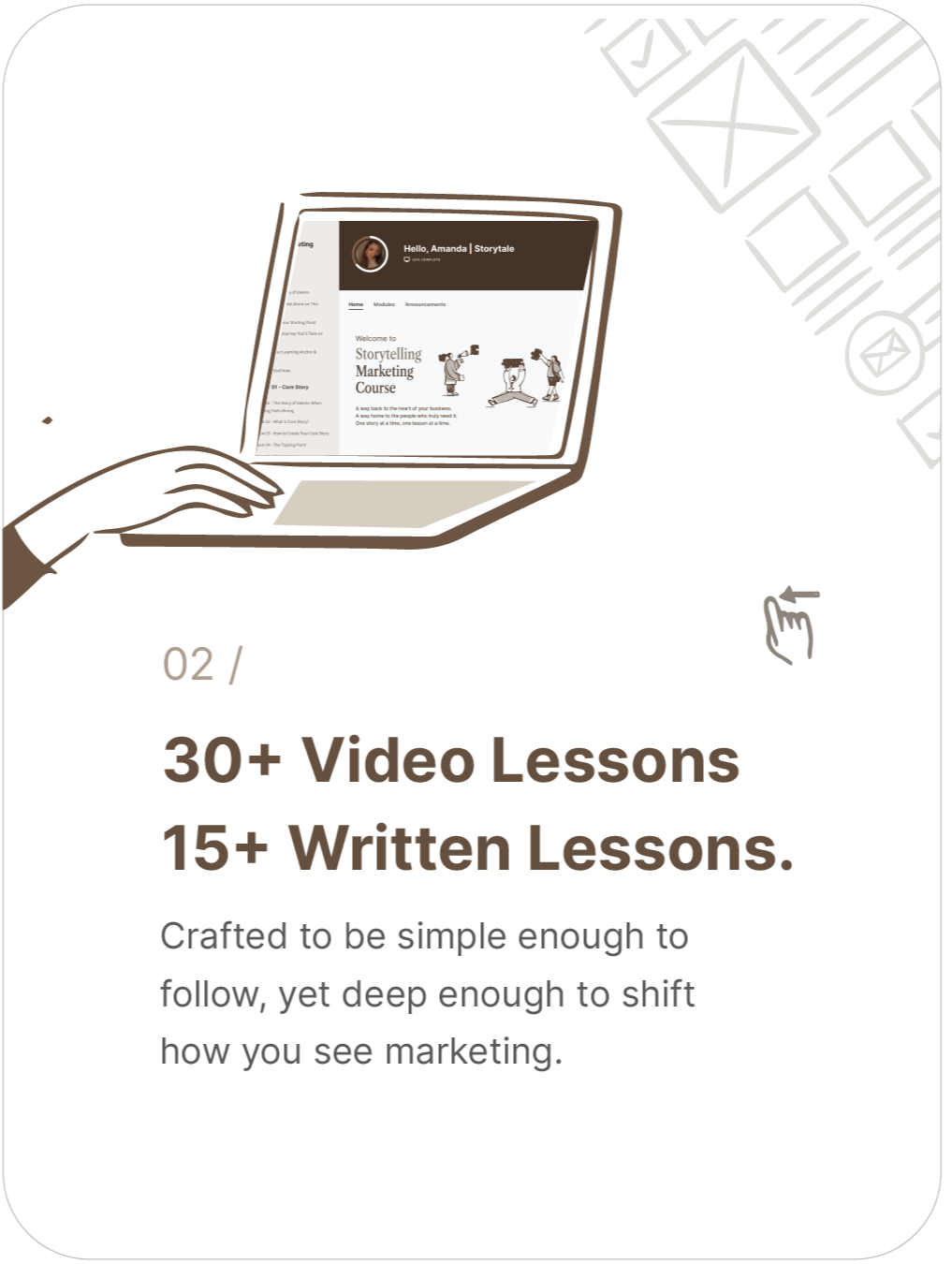 The Storytelling Marketing Course brings you back to the foundation — your story, your people, and your way of connecting.